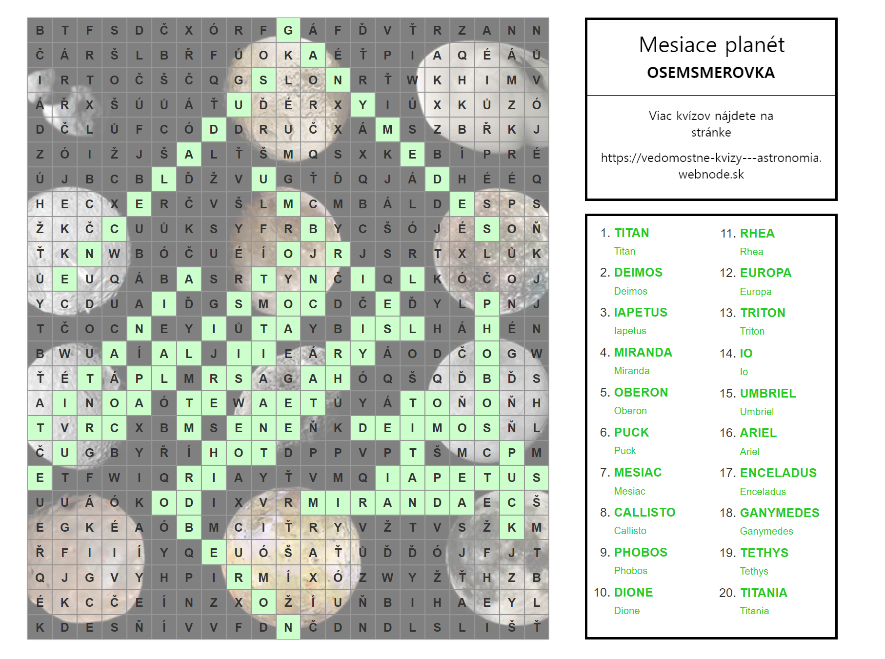 Mesiace planét - osemsmerovka
